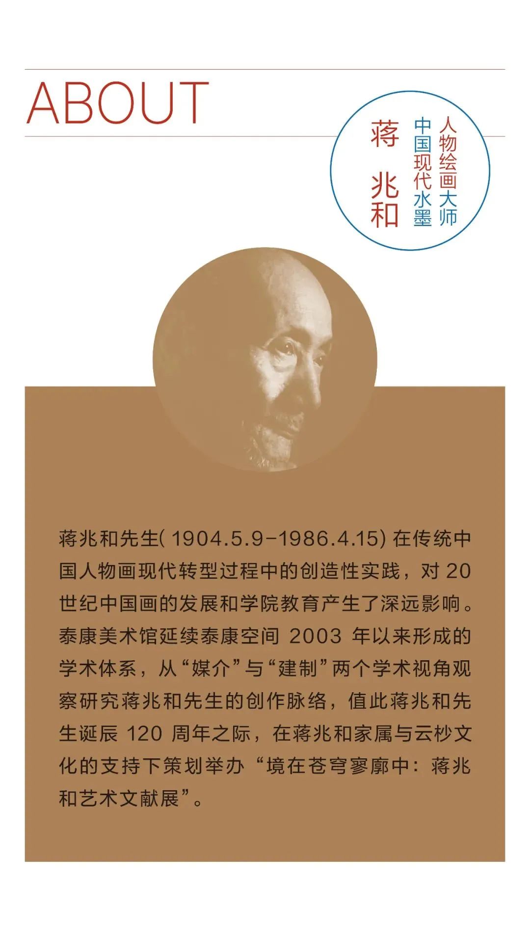 展览以蒋兆和晚年时的一副自画像收尾。画中的蒋兆和面带微笑仰望苍穹,彷佛他亲身经历的20世纪中国发生的沧桑巨变一幕幕在自己眼前闪过,记录着他一生“为民写真”的赤诚之心。