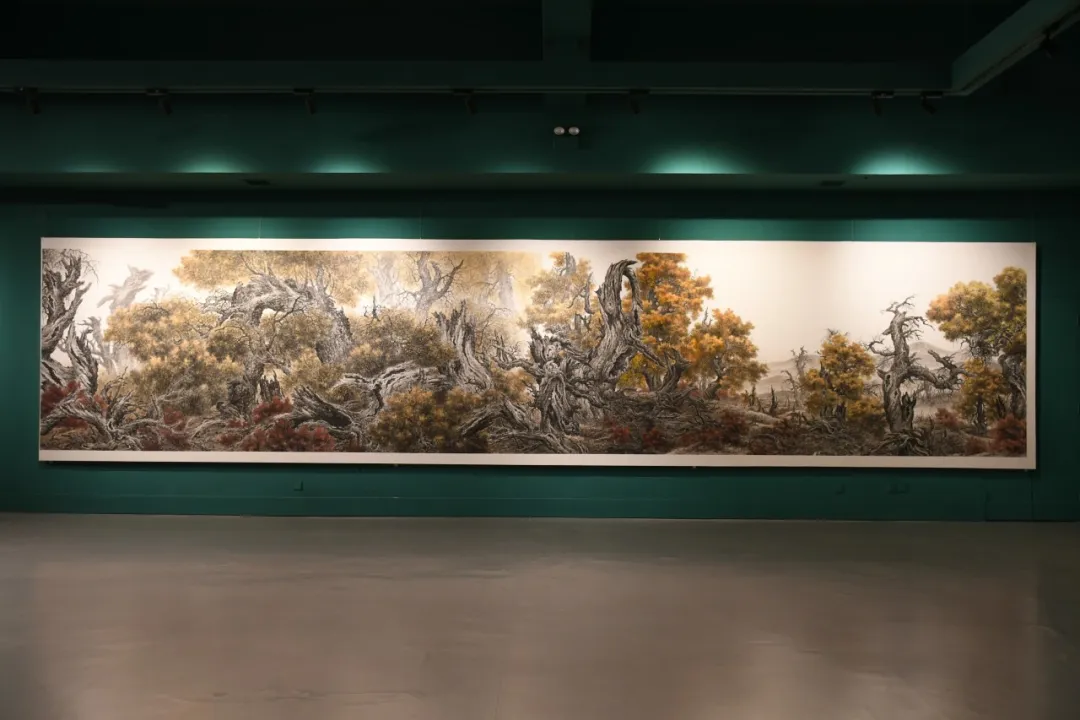 张介宇以胡杨题材享誉画坛。他深受胡杨树百折不挠生命力的震撼,因此生发出歌颂胡杨精神的创作欲望。他的画作生动再现了胡杨的铮铮风骨和不朽本色,每一笔、每一划都充满了对胡杨精神的崇敬与赞美。