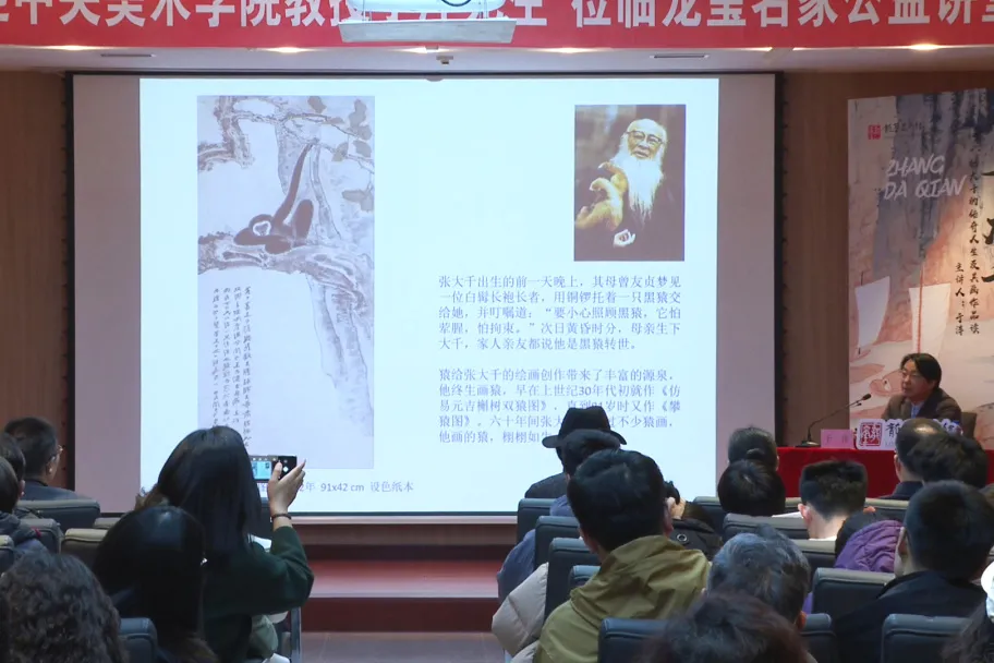 为配合展览深入解读,3月24日,馆内特别举办了一场公益讲座。邀请中央美术学院教授、龙玺美术馆学术总监于洋,向大家带来了一场关于一代大师张大千的传奇人生及其画作解读的精彩分享。