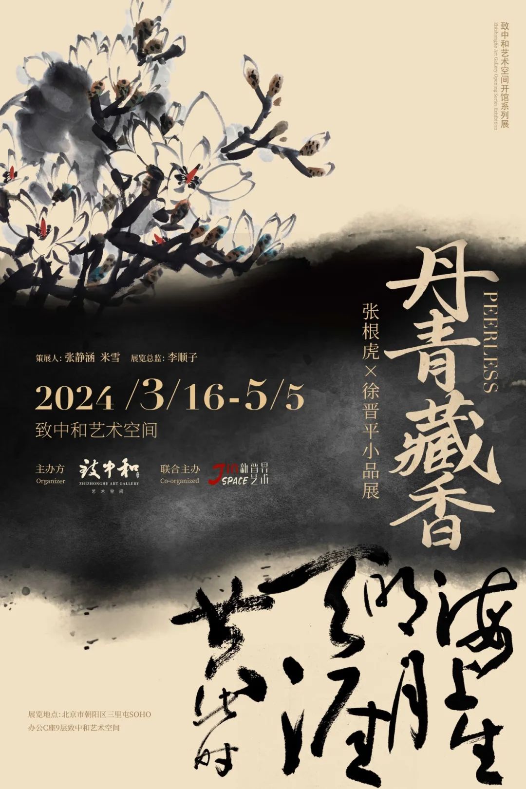 常说“书画同源”,书法与国画二者关系密不可分,彼此成就。致中和艺术空间和上海的新晋界艺术空间分属中国艺术界非常活跃的京沪两地,京派文化与海派文化特色各异,但又相互交融。张根虎与徐晋平两位艺术家均来自山西,亦师亦友,延续了北方和中原书画家的雄强、壮美,作品风格充满着正大、浑厚的阳刚气象,并且都在书法和国画领域不断寻求突破。此次展览,两家机构希望通透过两位艺术家的水墨作品本身,共同探讨中国传统艺术表现形式中的“书”与“画”在当代艺术语境之下所带来的全新艺术体验。