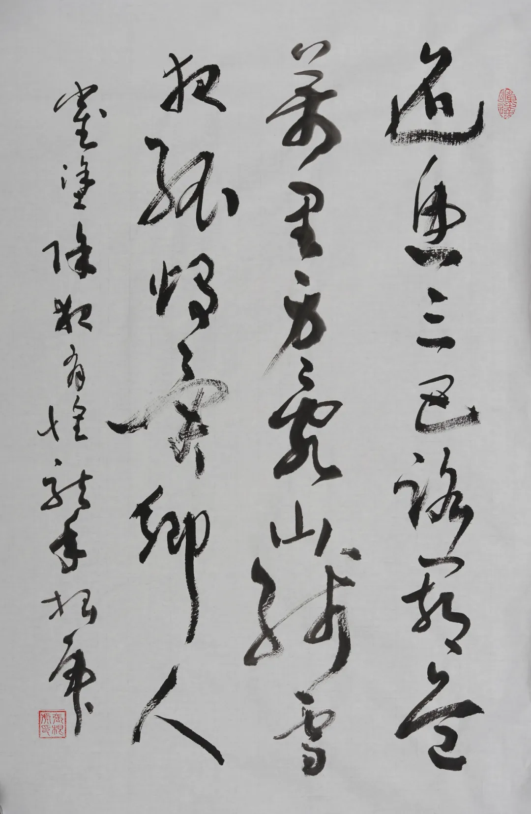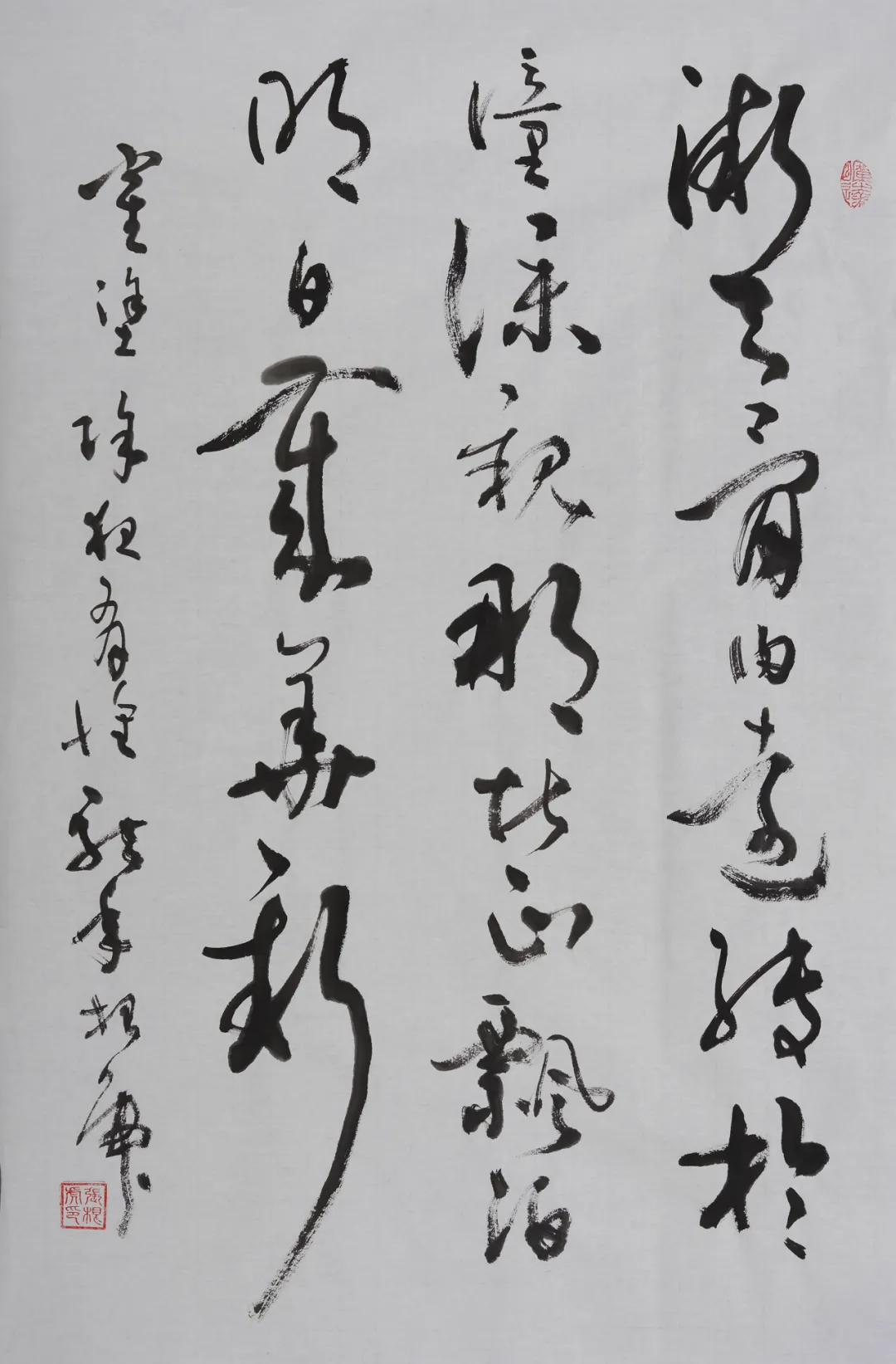 张根虎的书法作品自二王入道,采多家之长,而能使笔力一新,自得面貌;于结构严谨中见散淡追求。作为深谙书法内涵的名家,在其长期实践和探究中,紧紧抓住了其要理,侧重抽象“意蕴”的书法与国画具体“形象”的结合,在“以书入画”中饱含着气韵的连绵与贯通,透出前人的风神遗韵精要。