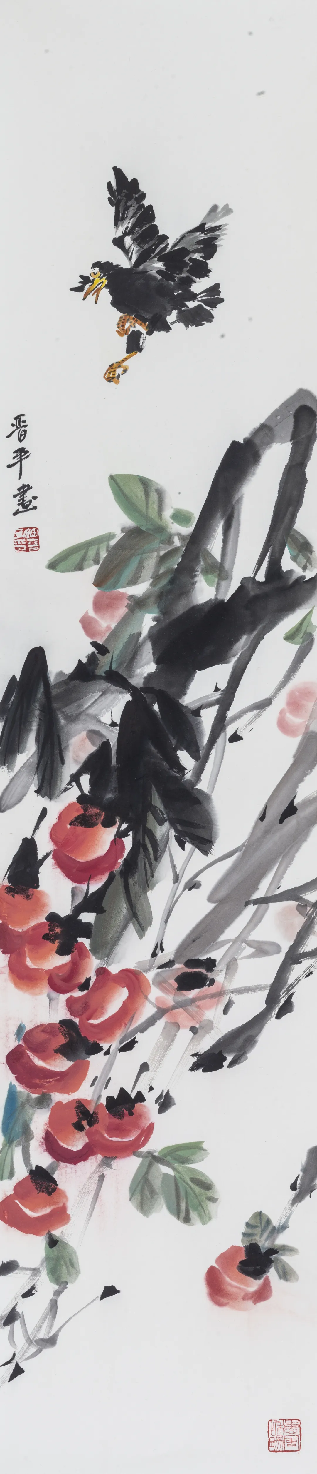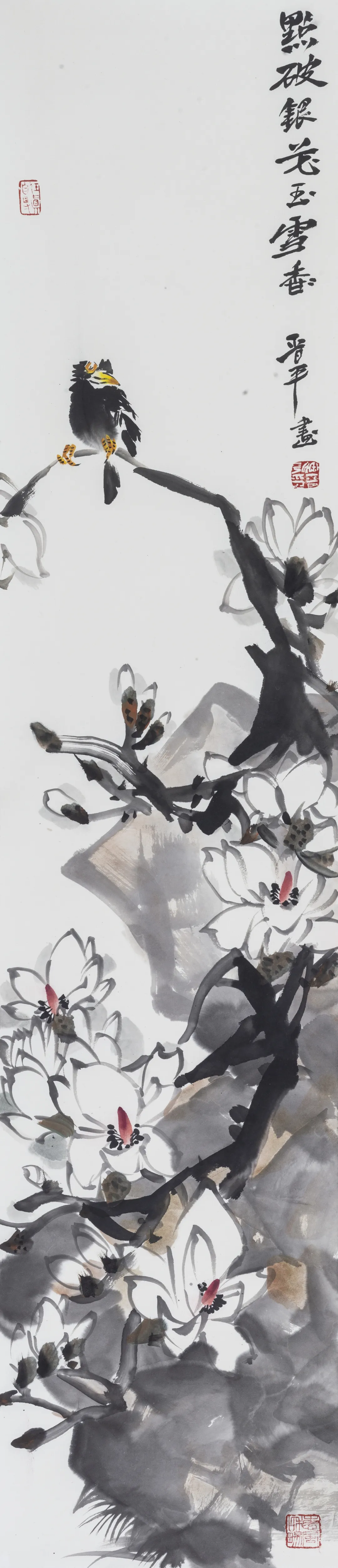 偏用浓墨重彩的小写意手法的徐晋平,大胆结合西画中奇肆的想象力与传统国画中朴野的表现手法,坚守着中国画的人文精神,并继承和发扬着中国画特有的笔墨语言。以其耐人寻味的对花鸟的解读与表现力,通过笔墨上以清雅的方式来营造悠然意境,诠释文学素养与自身修养,堪称元气淋漓,妙境悠然。