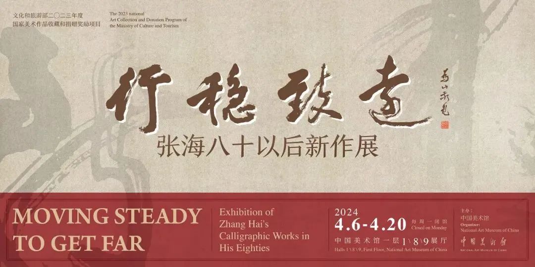 “《行稳致远》张海八十以后新作展”于4月10日至20日在中国美术馆举行。本次展览由中国美术馆主办,是“文化和旅游部二〇二三年度国家美术作品收藏和捐赠奖励项目”,集中展示了以张海八十岁后为主的新近力作。