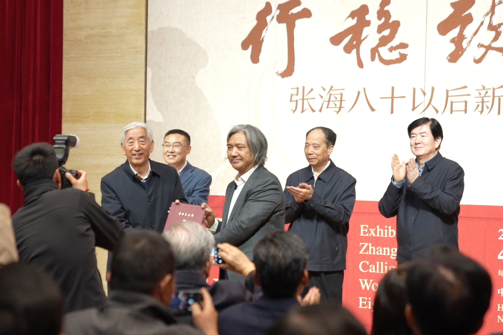 开幕式上,张海将30件不同时期、多种风格及幅式的代表作品,无偿捐赠给中国美术馆。中国美术馆吴为山馆长接受捐赠并为张海颁发收藏证书。