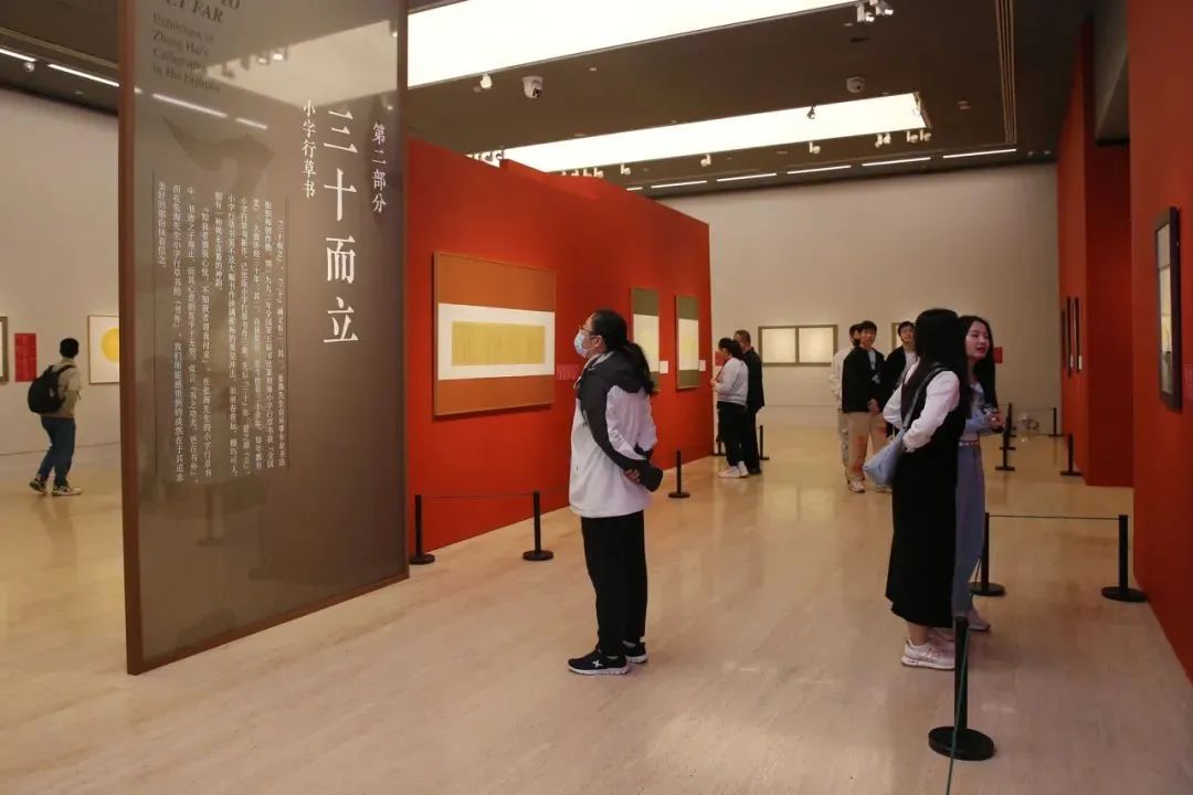 此次展览展出作品百余件,包括楷书、隶书、篆书、行草诸体,幅式多样,装裱考究,作品绝大部分为张海进入八十岁后所创新作,是具有代表性的人书俱老的典型之作。展览分设在中国美术馆1、8、9三个展厅,第一展厅为“八十不倦”主题展厅,是综合展,展出楷书、隶书、篆书、行草书。展品多为八尺、六尺,以大字为主,中堂、条幅、屏条、斗方俱备,儒雅清朗,气象恢弘。