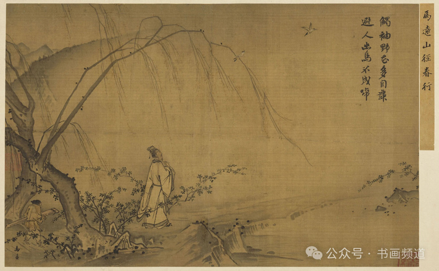 到了宋代,春游的风雅更添几分文人气息,南宋画家马远的《山径春行图》,便是宋代理学思想与春日意境的完美融合,尽显“云淡风轻近午天,傍花随柳过前川”的悠然心境。