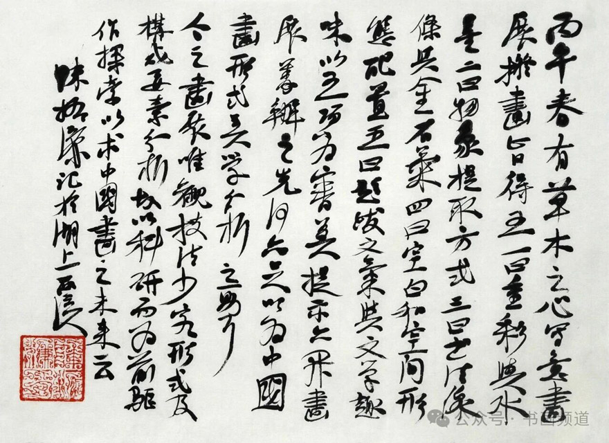 今之画展,唯观技法,少究形式及构成要素分析,故以科研而为前驱作探索,以求中国画之未来云。