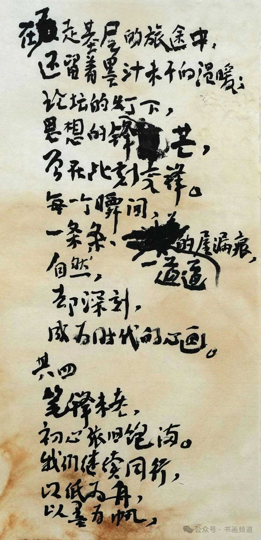 书者,心画也。收放之间,蕴性情之正;挥运之际,见胸襟之广。吾辈不徒以技法相尚,更以修身为本。临帖以静心,创作以养气,传道以明德。数十载光阴,但守砚田一洼,墨香一缕,与诸道友同守斯文一脉,共传华夏之魂。更有赖书画传媒,弘道扬馨,烛照幽微。载先贤之妙论,录今贤之佳构,铺文墨于纸上,传雅韵于四方。使幽斋之艺,达于万众;使孤赏之趣,化为共乐。每念及此,心存感佩。