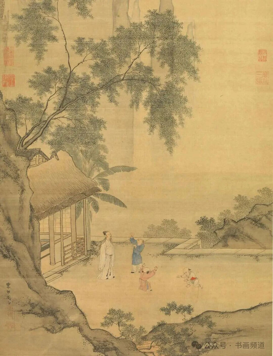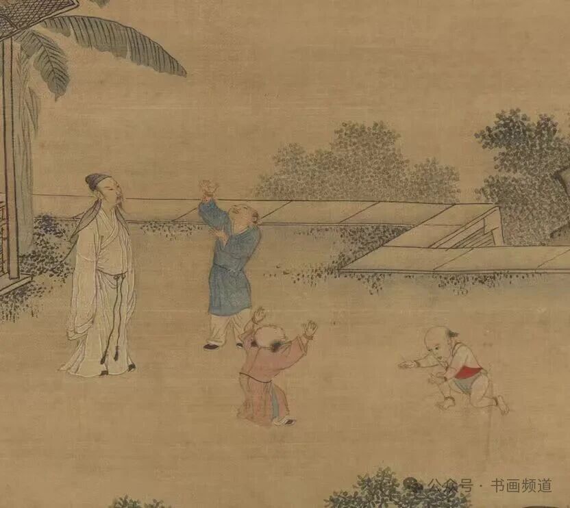 明·周臣《闲看儿童捉柳花图》